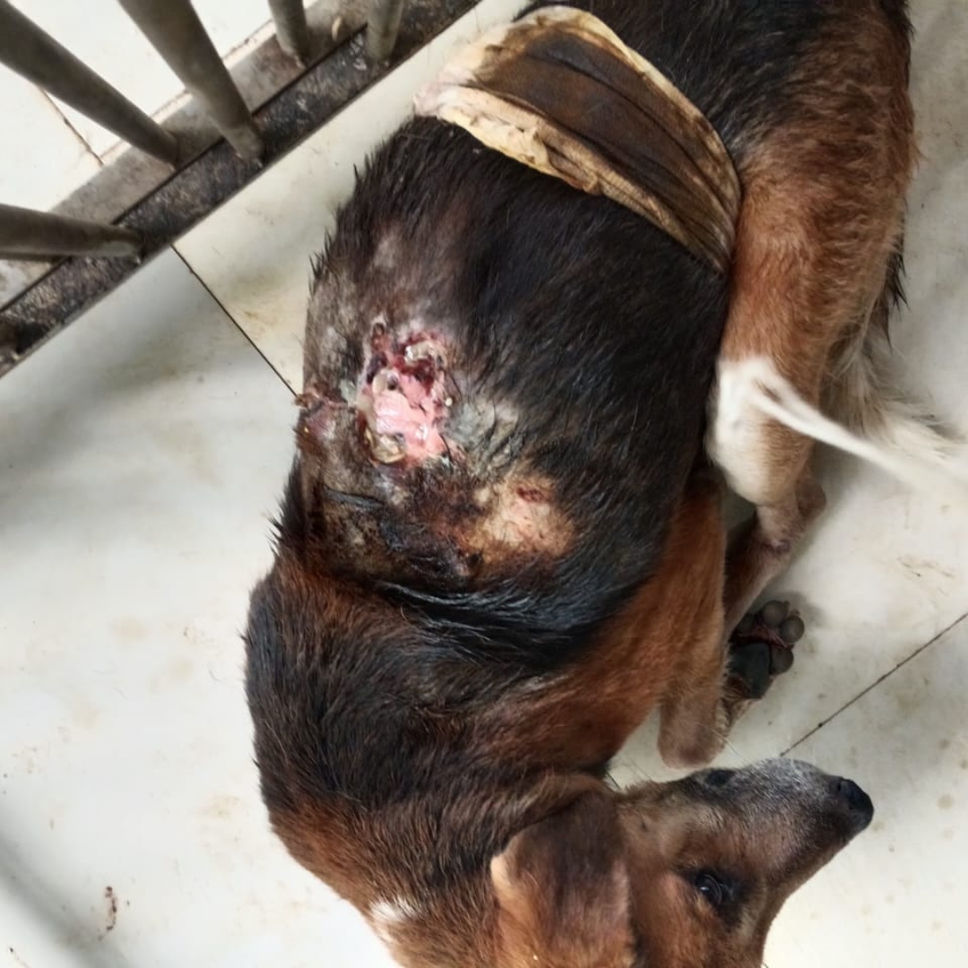 Meet Browny Browny’s Final Fight Against a Maggot Wound Browny, a brown male mongrel, was rescued by Sadhiya with a severe maggot-infested wound that had