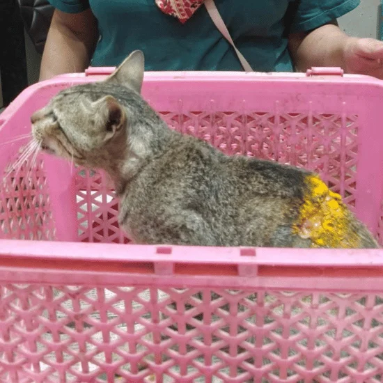 On 08/02/2026, Ellu, a grey DSH cat, was brought in with a wound on her back that was causing visible pain and discomfort. The injury required immediate care to prevent infection and further tissue damage.