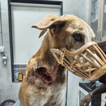 On 25/09/2025, Sheru a golden-colored Mongrel was rescued in a heartbreaking condition. A large maggot-infested wound on his neck was slowly rotting away his skin.