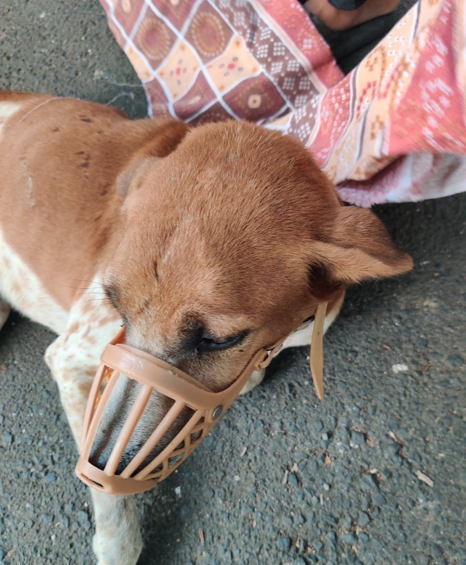 Badshah a brown and white male mongrel was rescued from the streets after being spotted in visible pain.